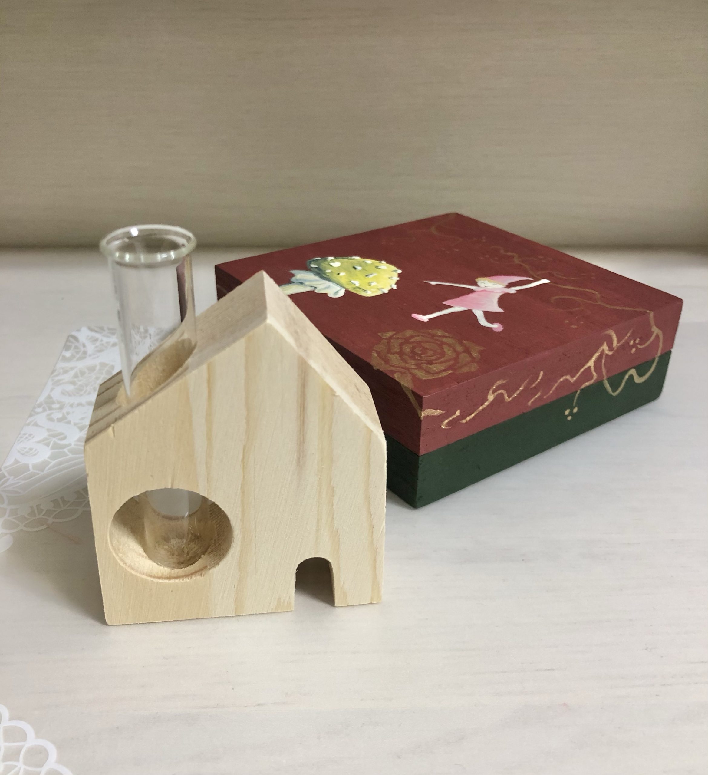 さあ、この前紹介した木箱に周りの模様を描き始めました✨✨🍄
