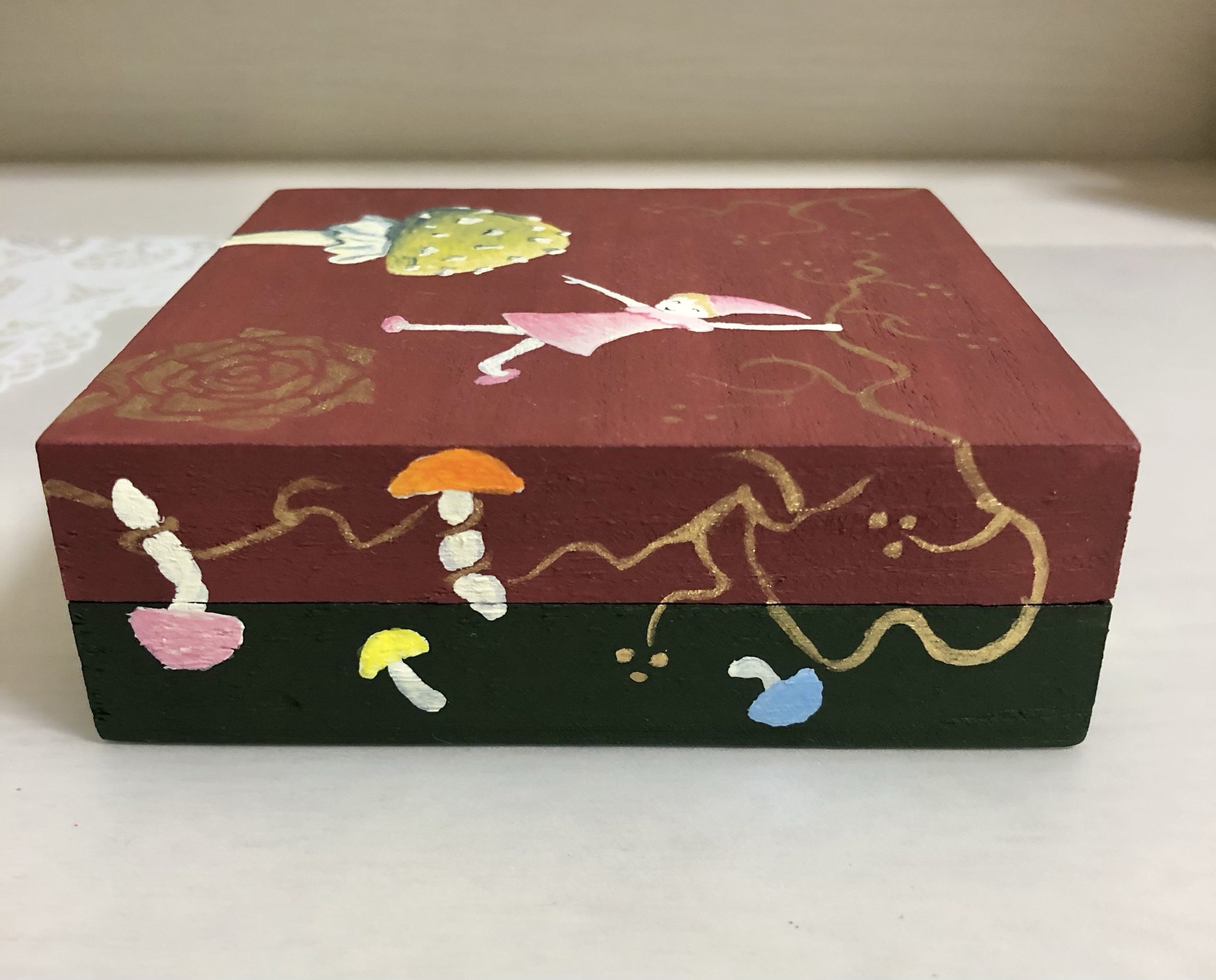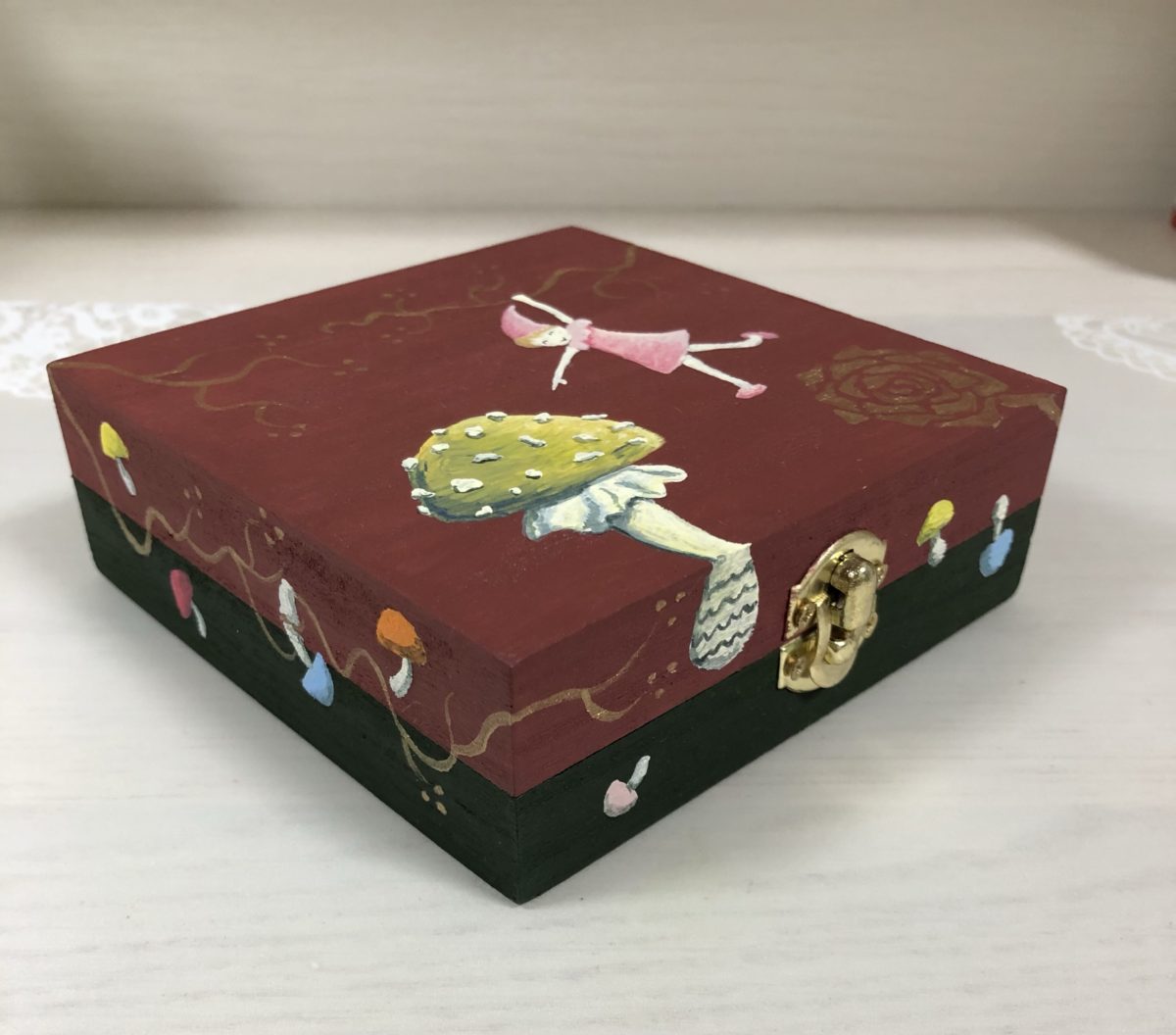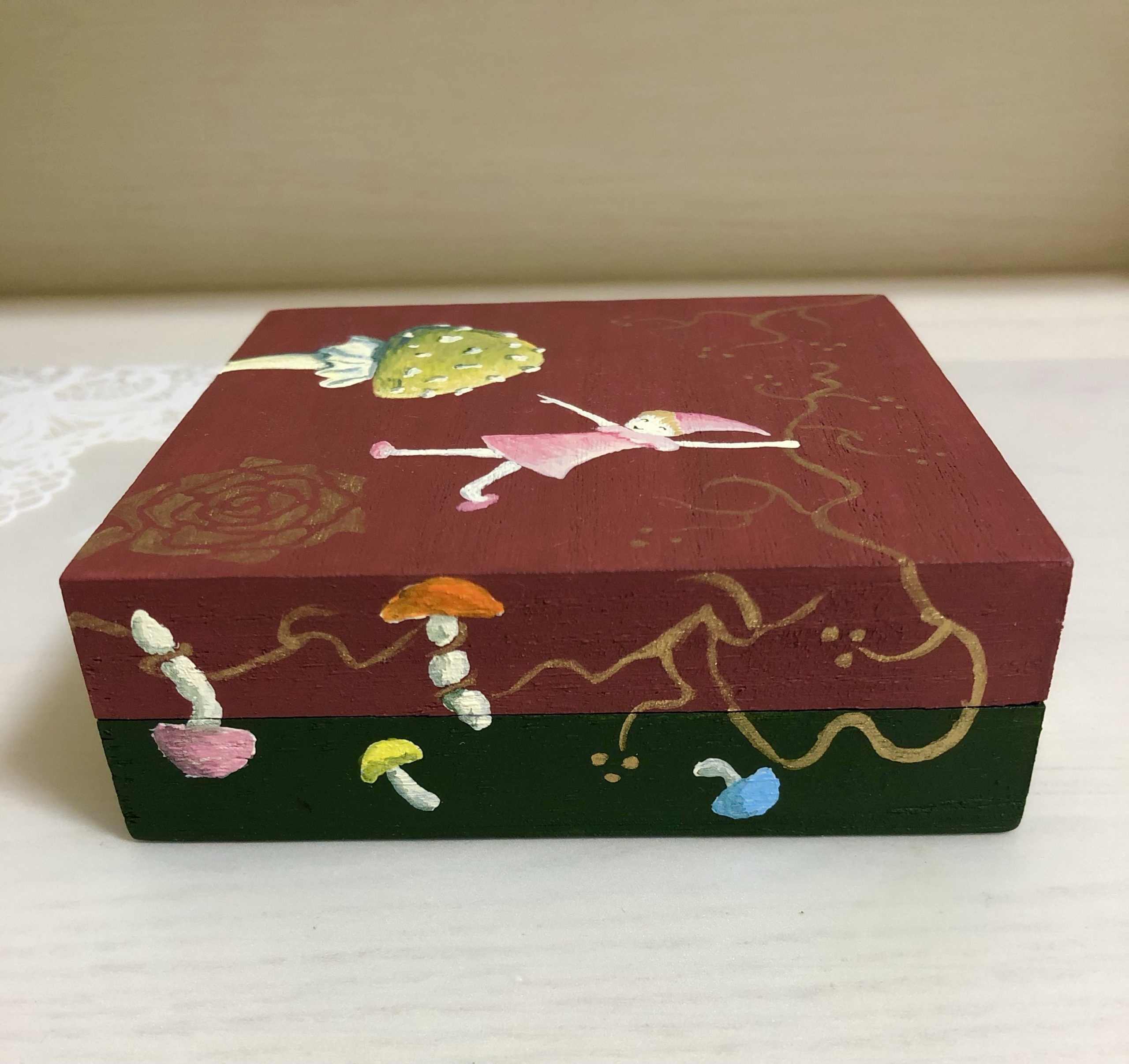 次回は、コーティング塗装のあと、この箱の中にテーブルクロスの端切れを貼っていきたいと思います。