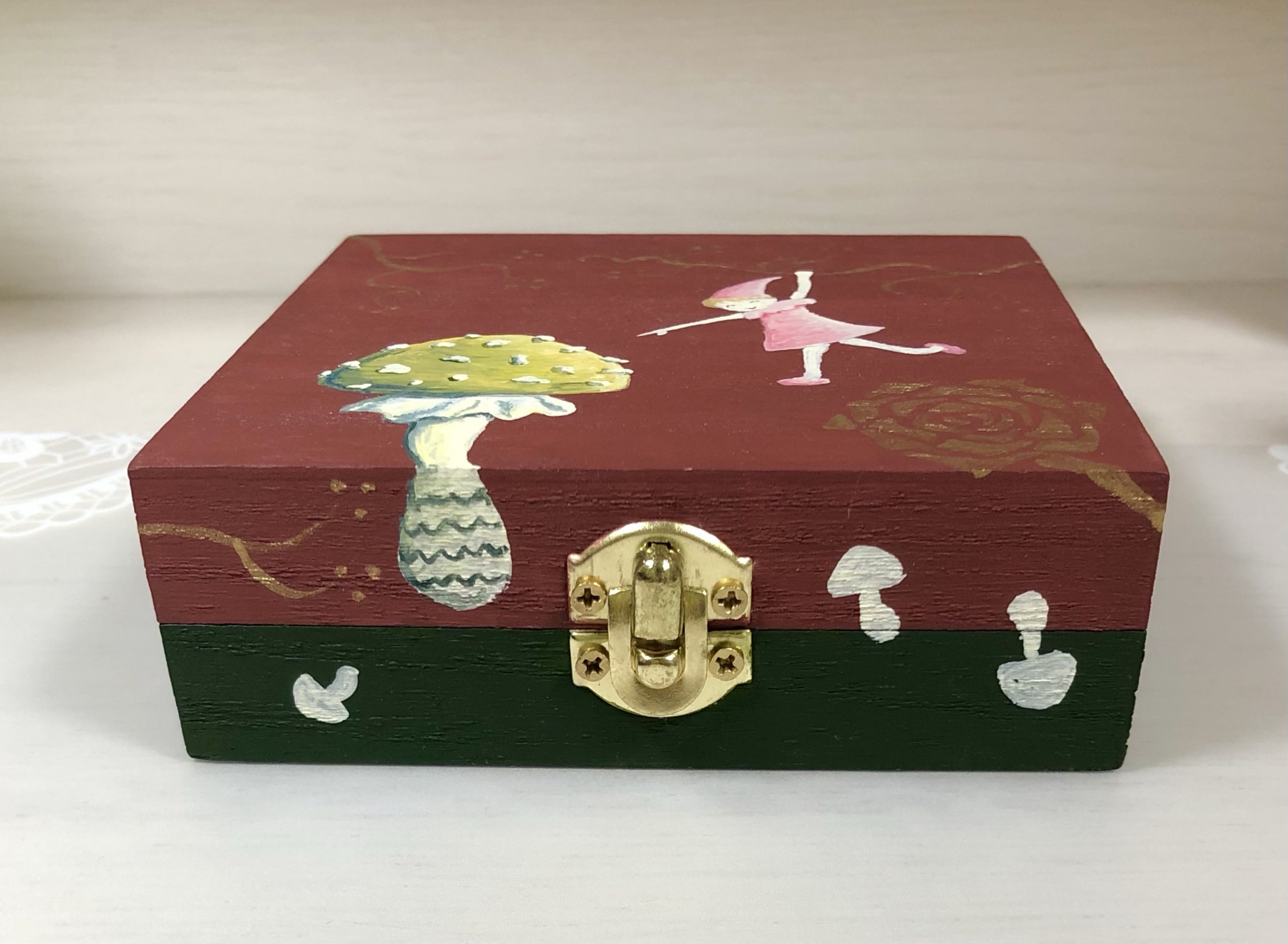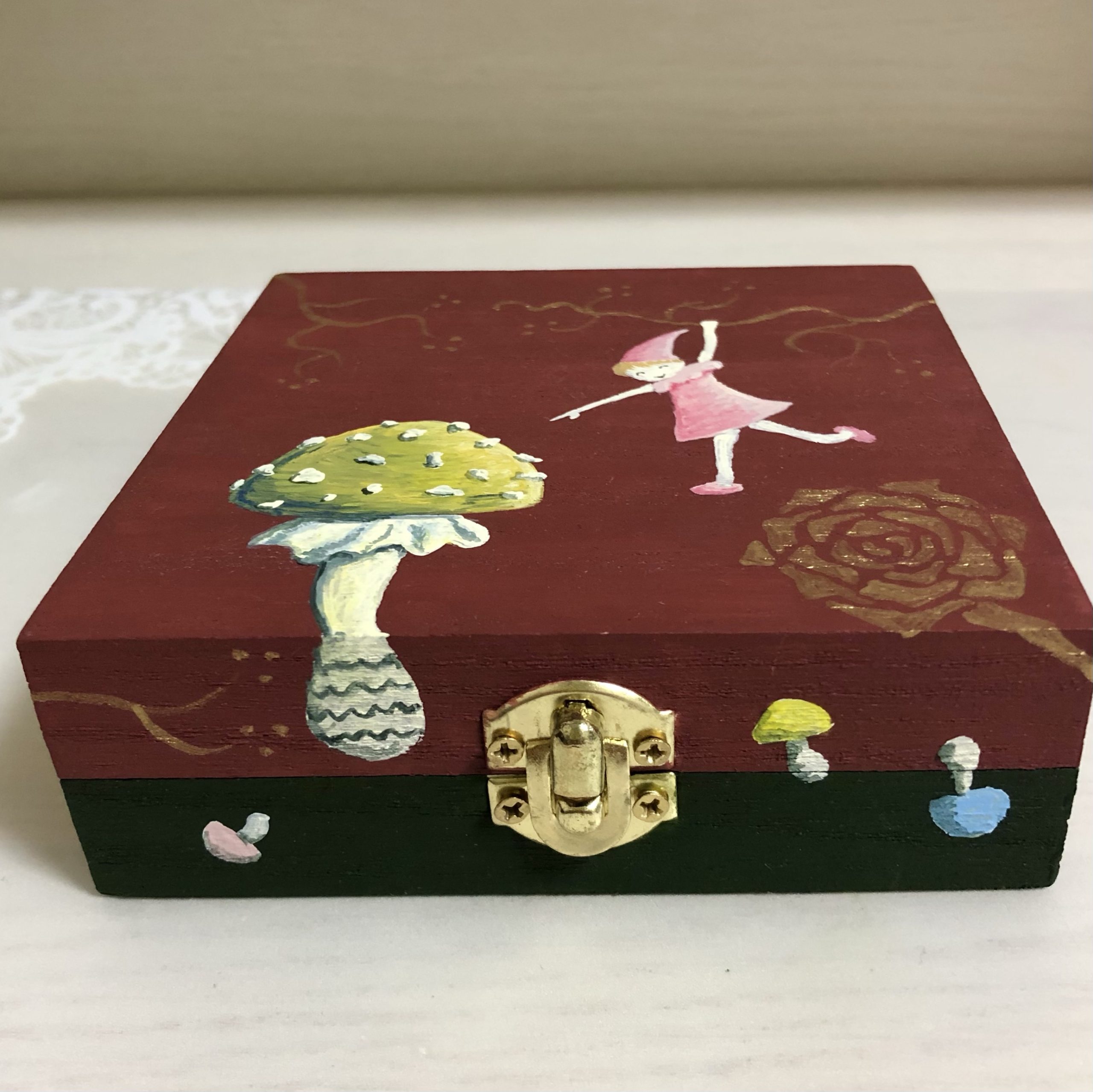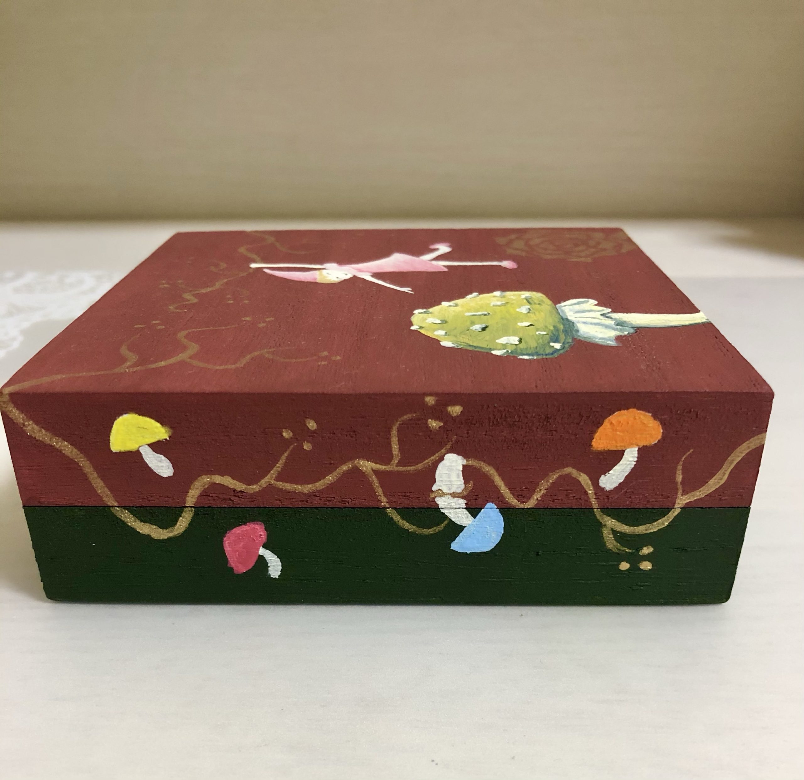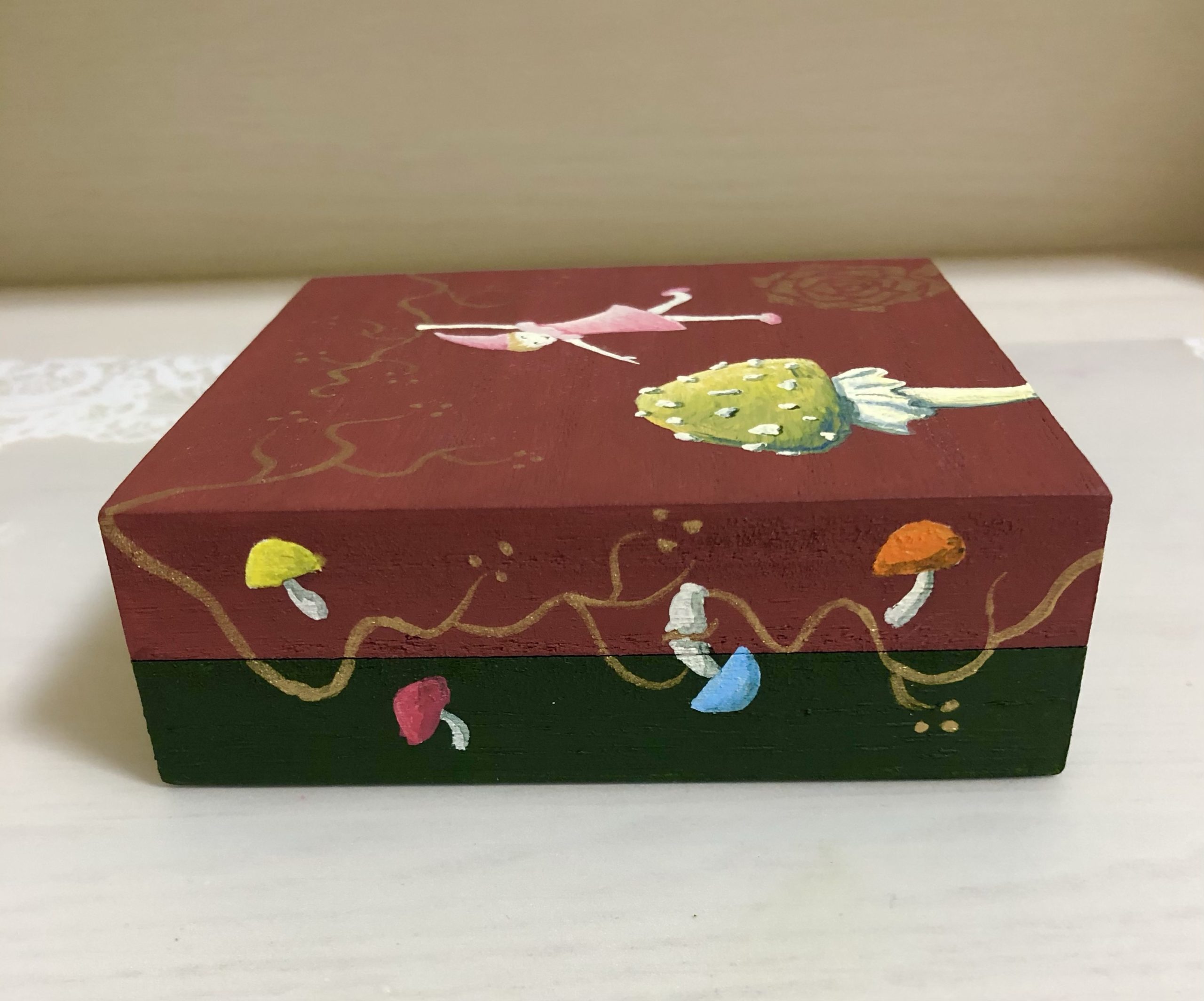 次回は、コーティング塗装のあと、この箱の中にテーブルクロスの端切れを貼っていきたいと思います。