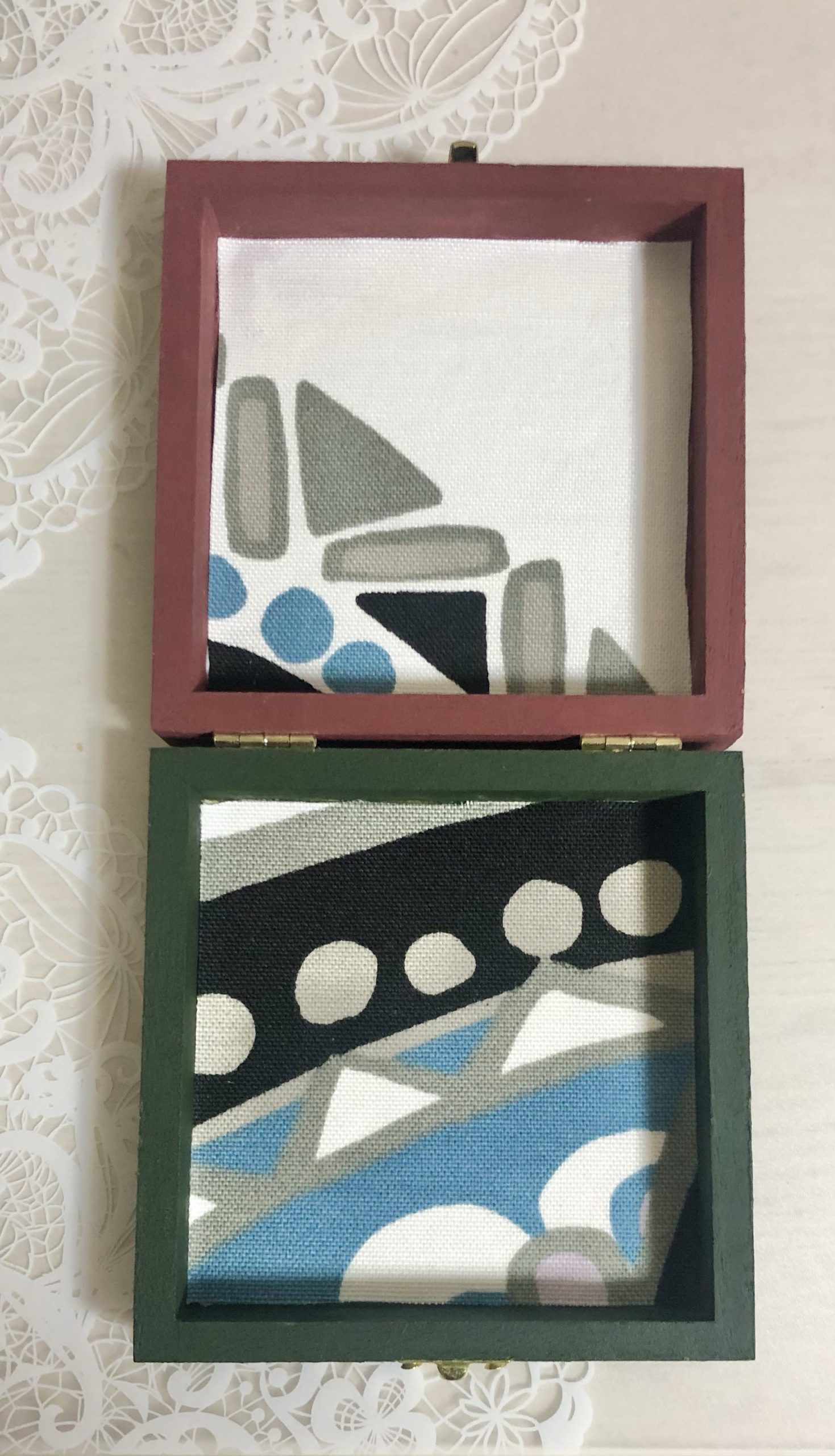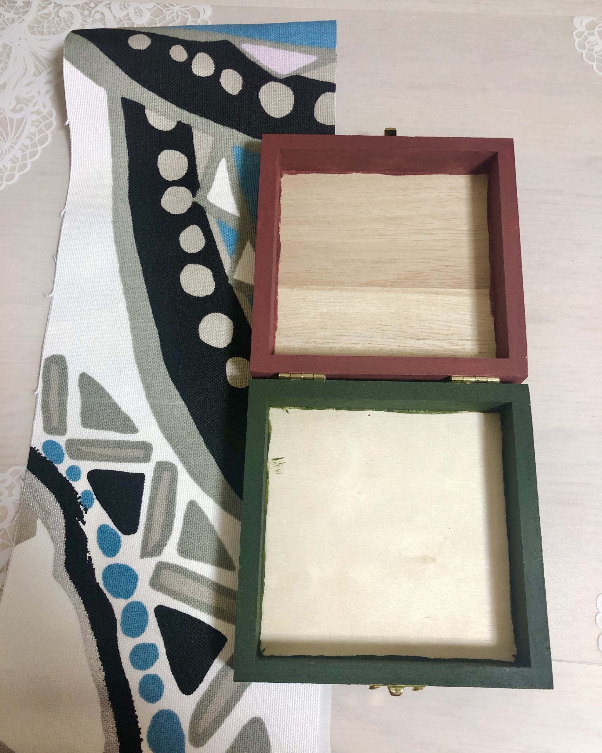 仕上げにこの端切れを箱の中の底面と天面に貼ろうと思います。