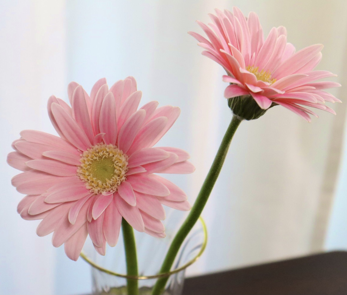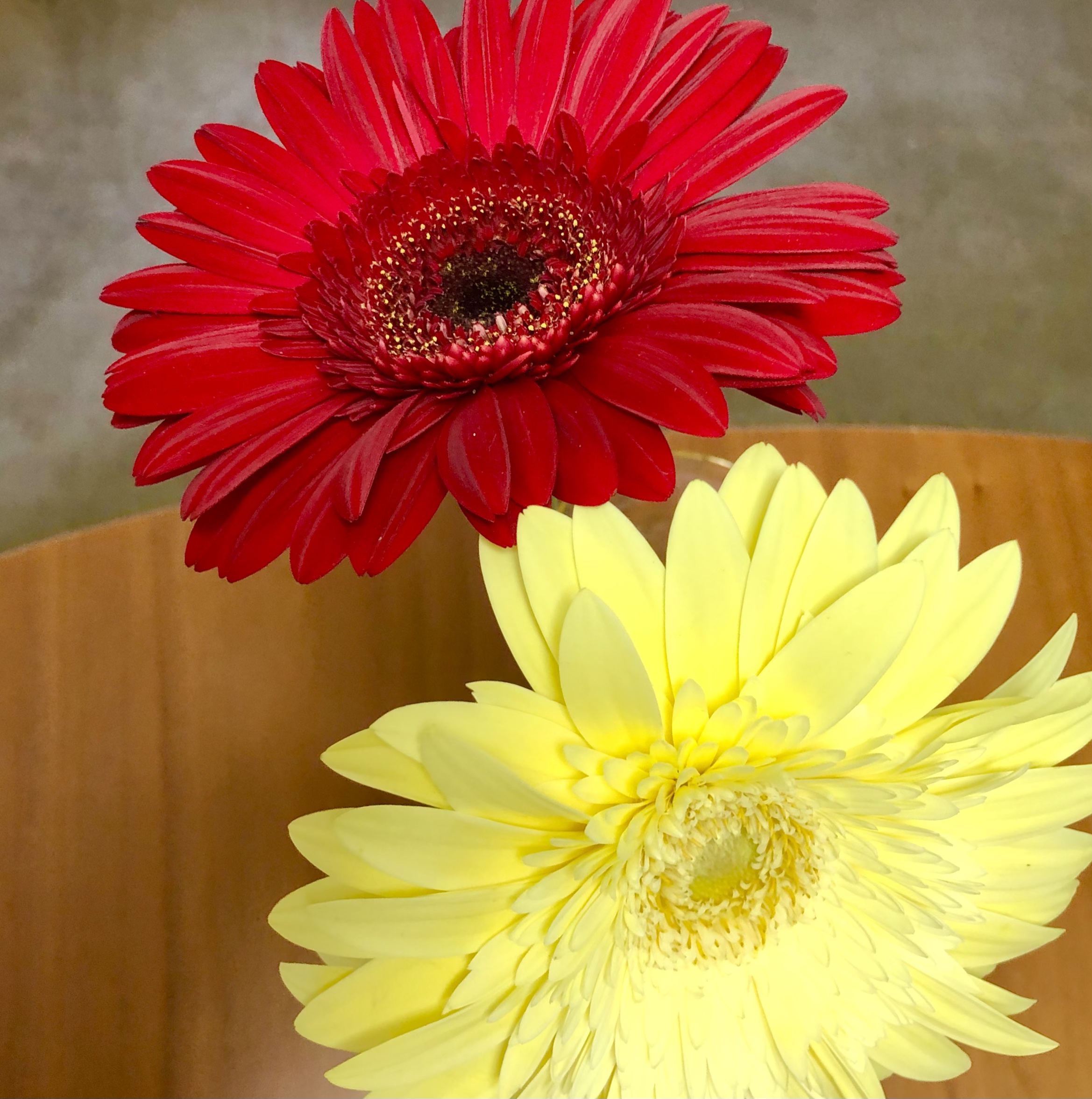 ガーベラはさ、1番上のは大輪のものでゴージャスに見えるものや、下の2つのガーベラのように可愛いものや沢山の種類があるので、その時出会ってアッて思ったものは買ってしまうのです😅