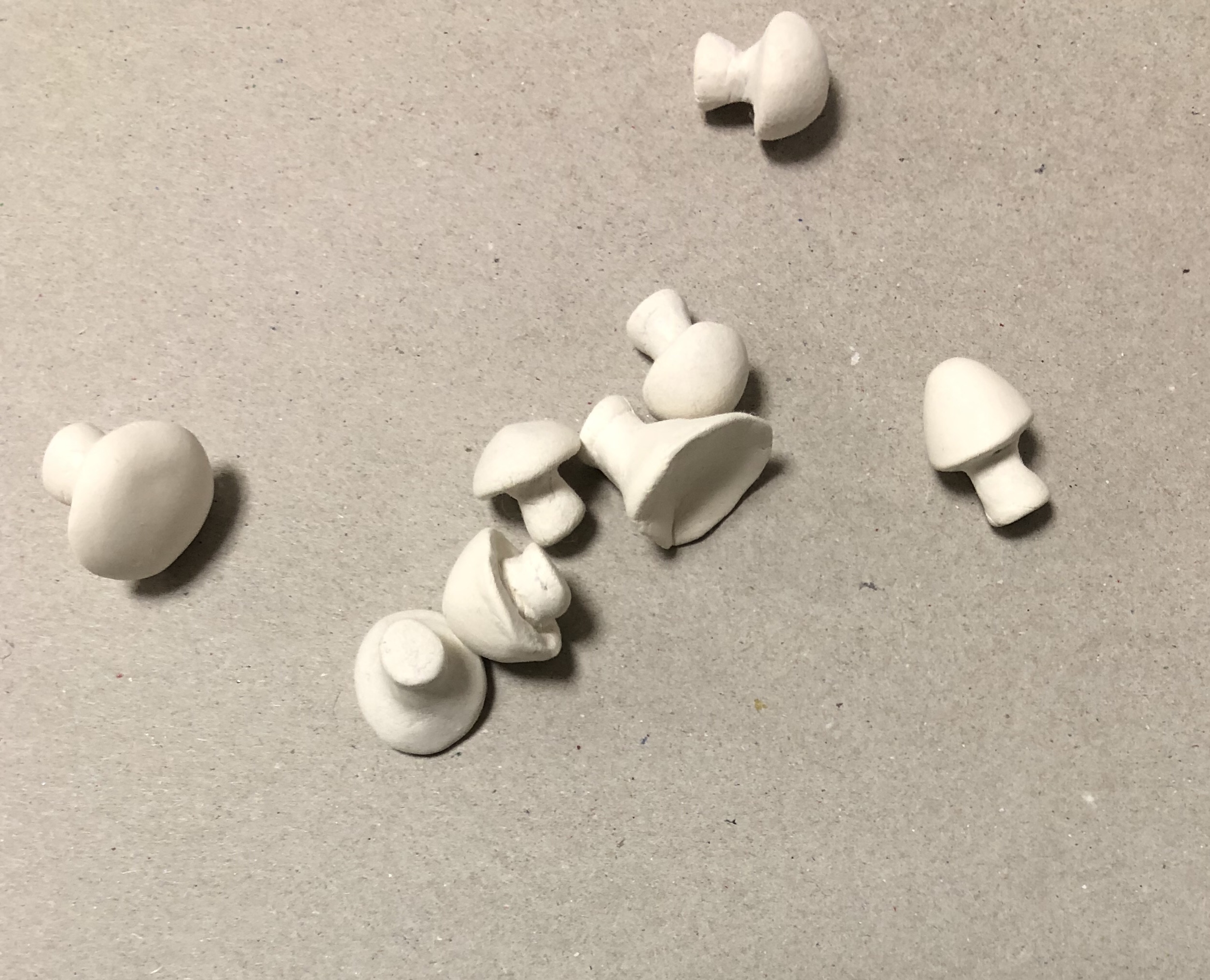 まずは、奥行きのある額の中に入れるキノコたちを石粉粘土で作成しました〜🍄🍄
