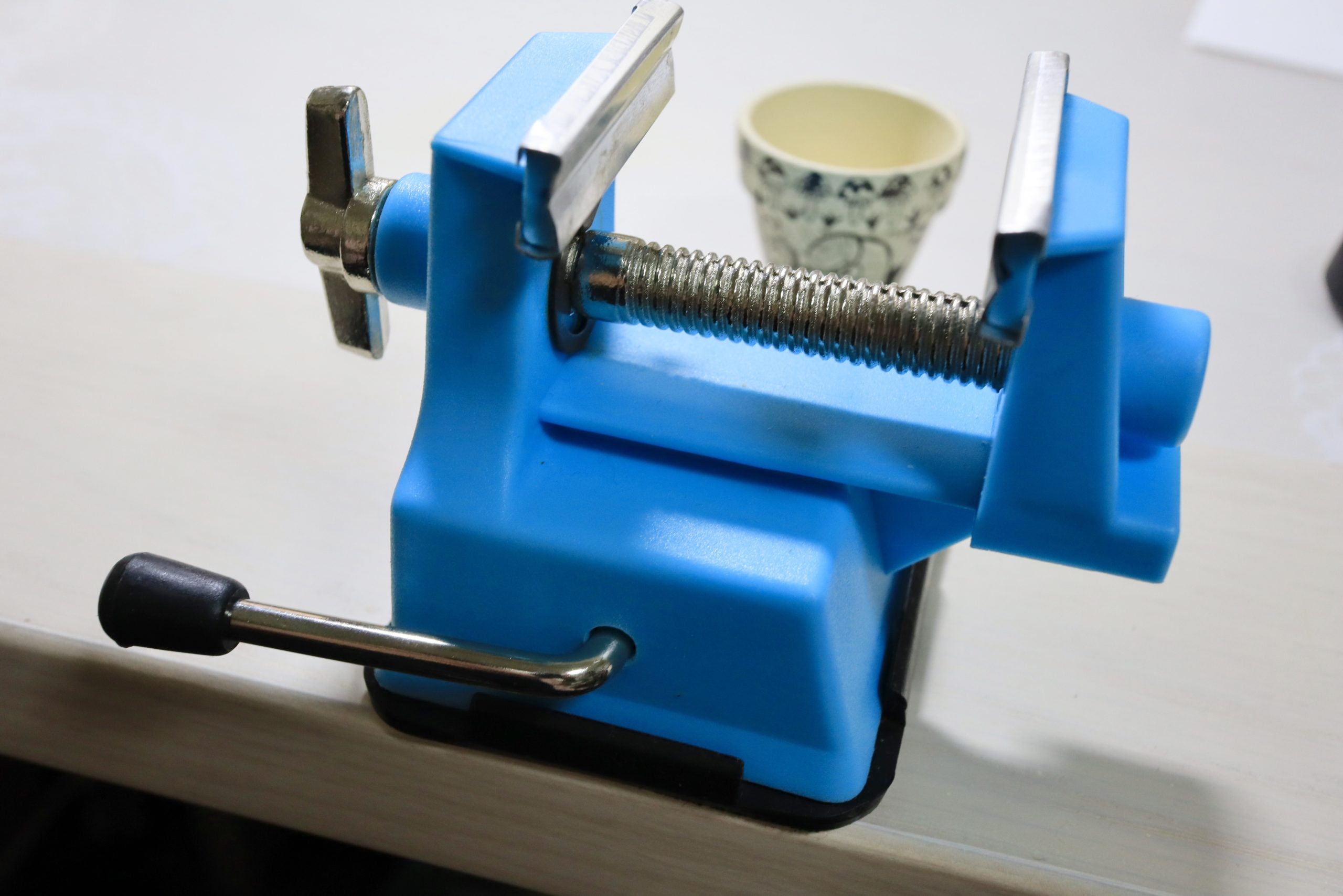 そして、虫メガネを持って作業するので、おさえておく万力〜