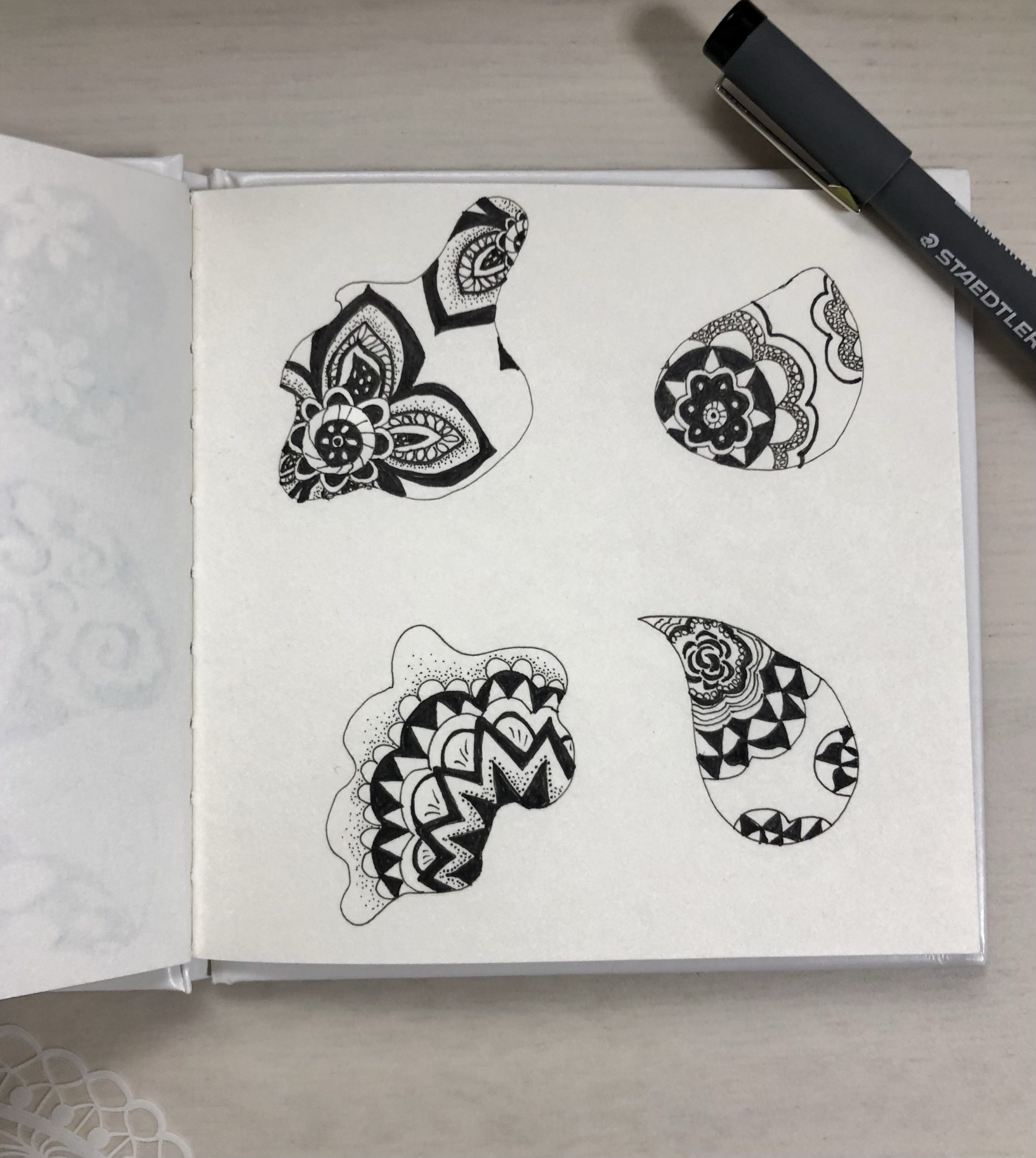 前回のゼンタングルパターン帳の2ページ目に描いてみました(^-^)