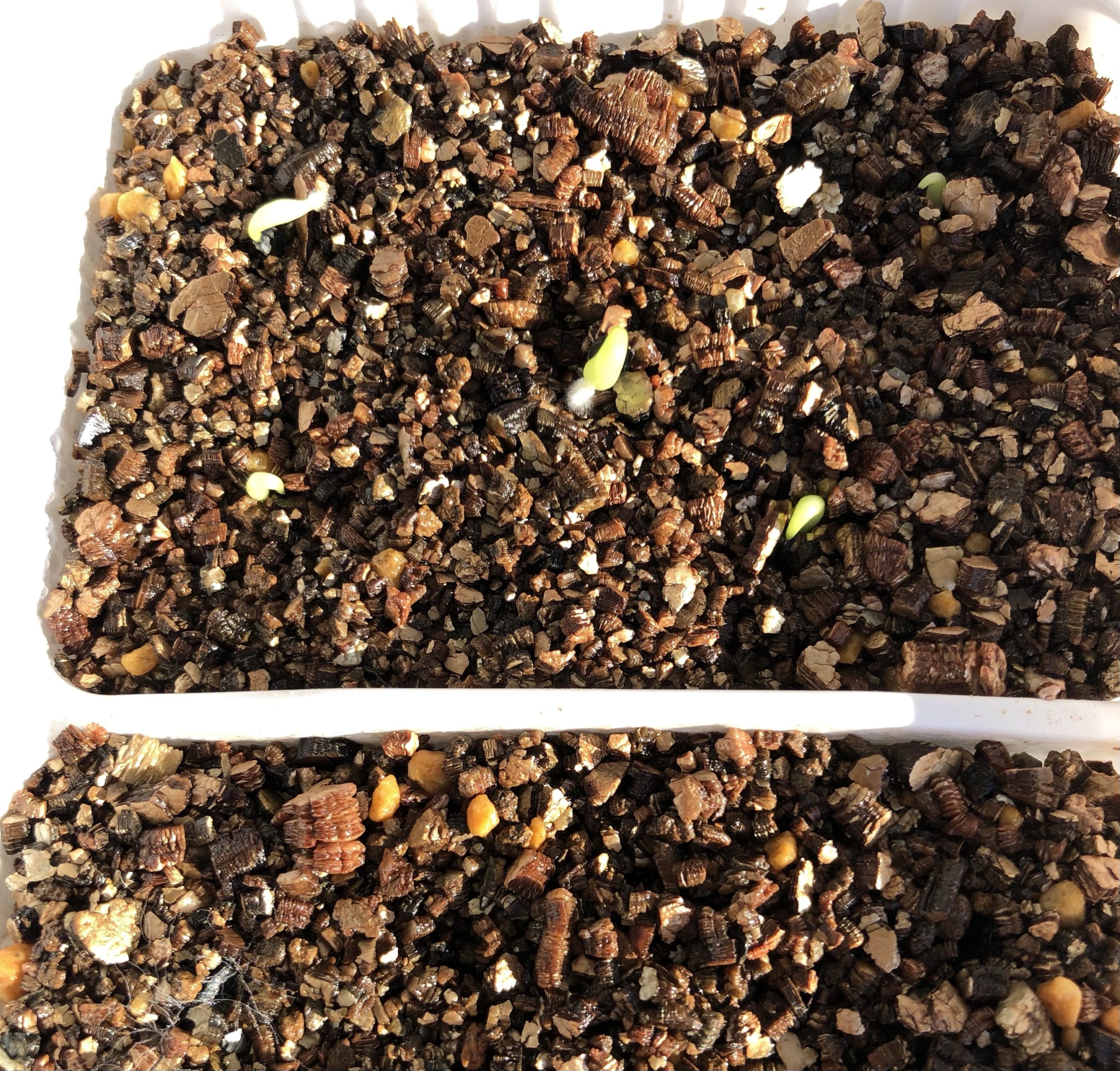 植えたのがチタノータブルー5粒とモンタナ10粒なのでチタノータブルーは100%発芽でした。