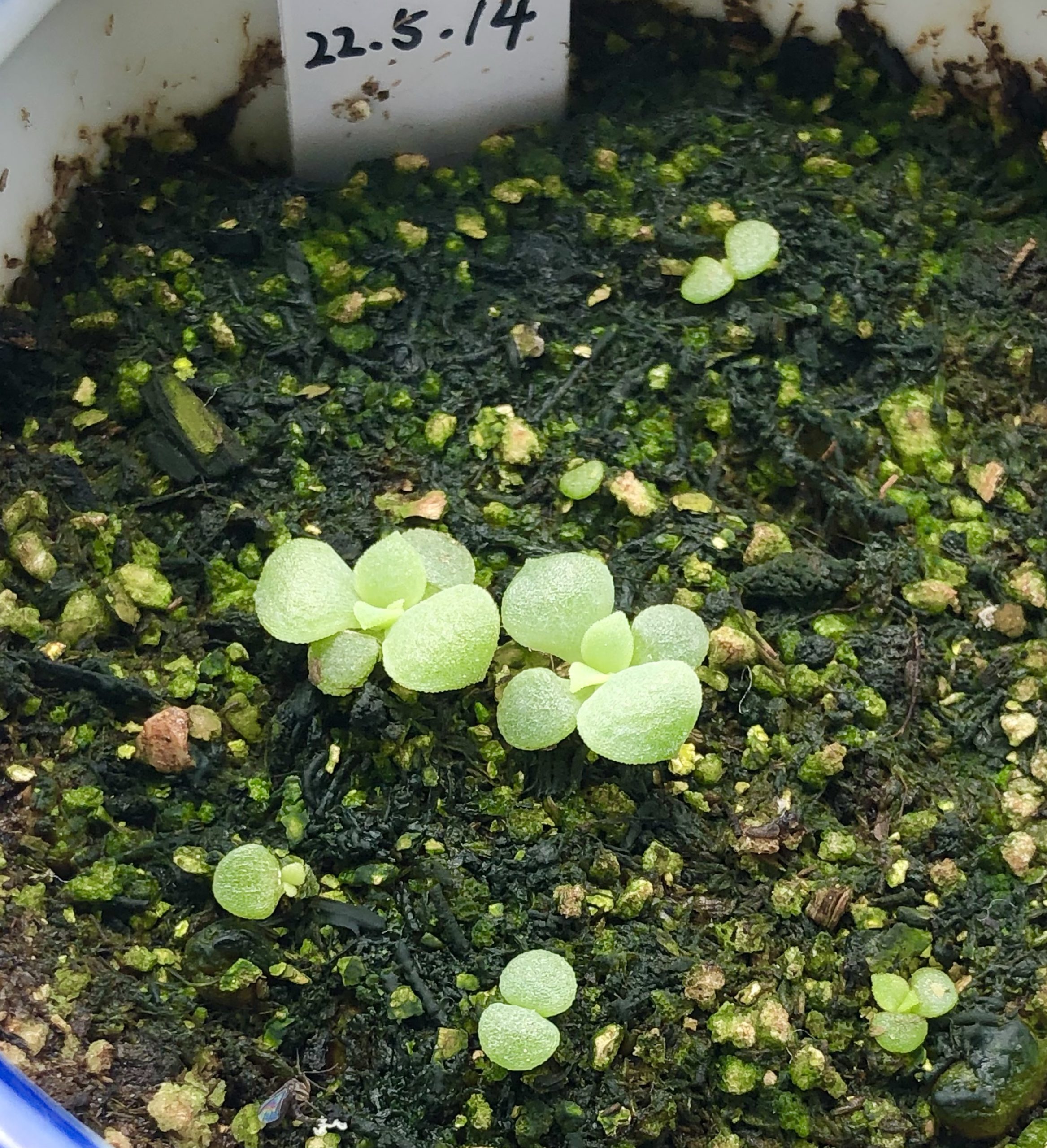 これはね〜発芽はしたのですが、生き残っているのはチタノタブルーが2個だけという結果に…