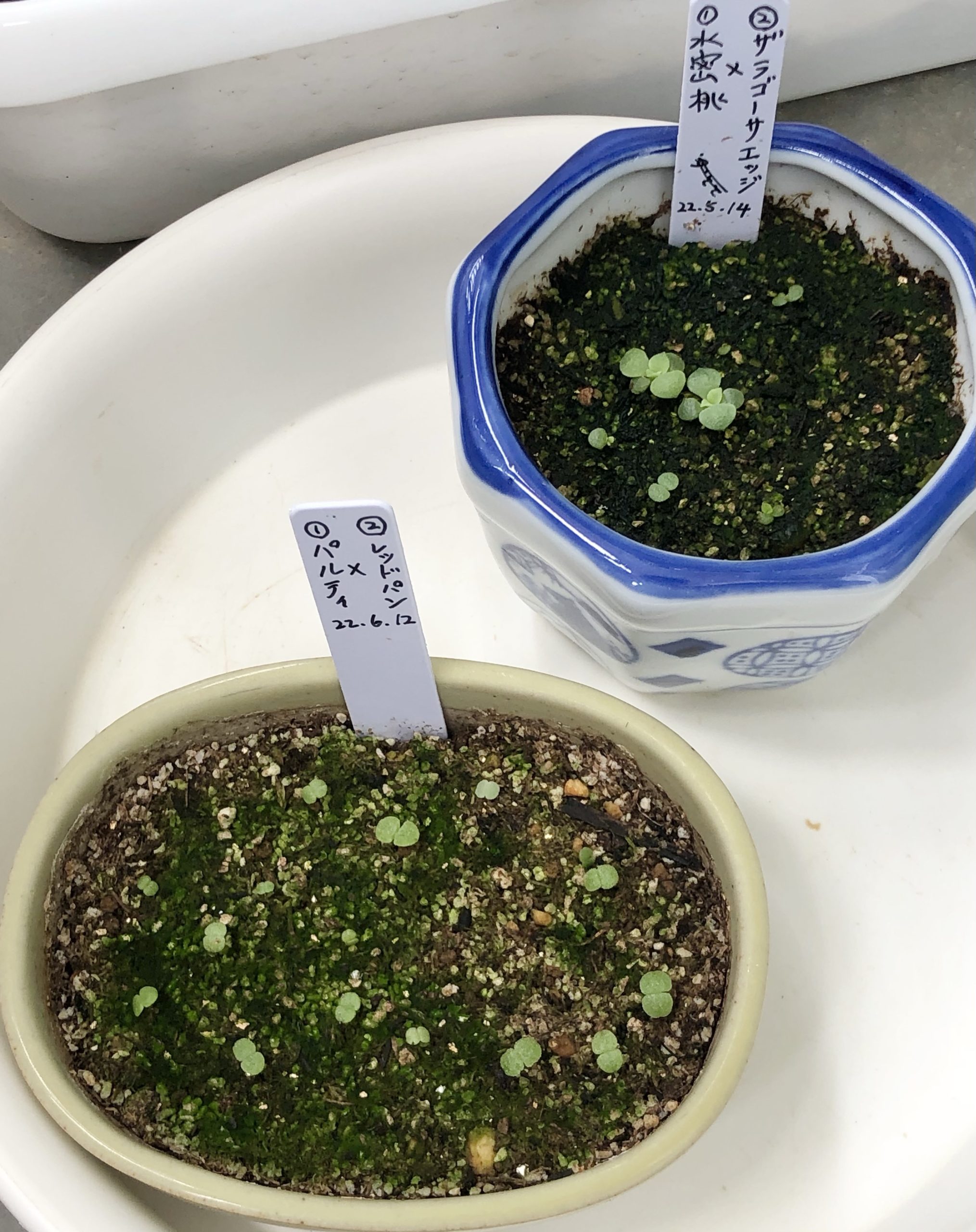 たくさんの種類のタネが回収できて交配は成功したんだけど、発芽したのは、この2種類だけでした。