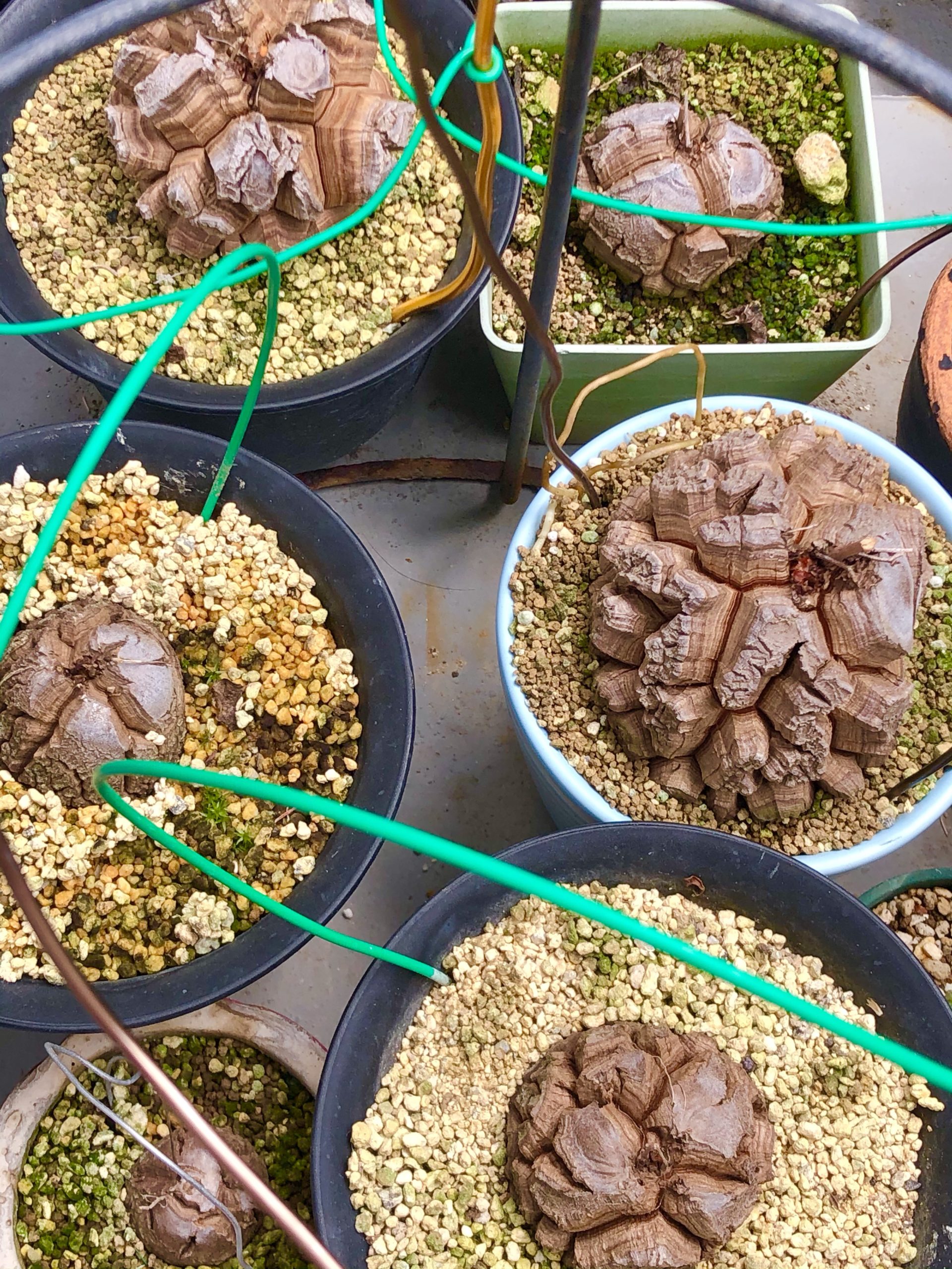最近は場所問題で、上の写真の様に年数の若い小さい亀甲竜と成長途中の三年くらい経っている亀甲竜がひとつの鉢に入っていたりするのでまた大掛かりな植え替えが必要です。