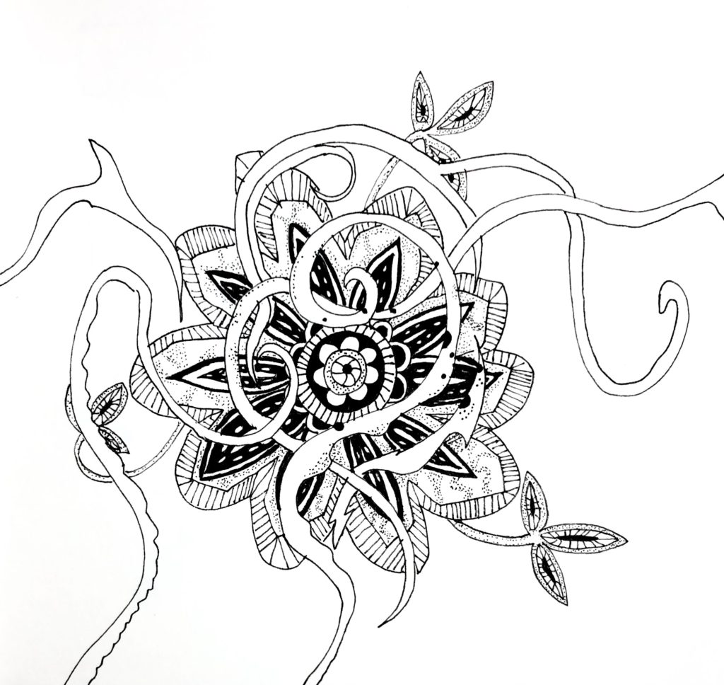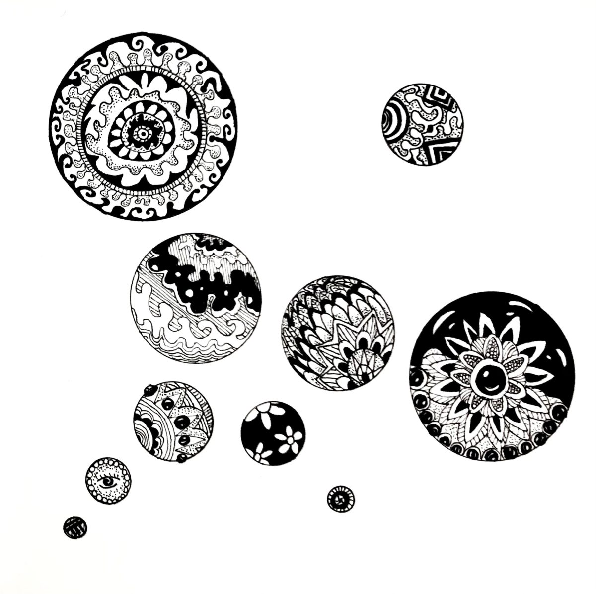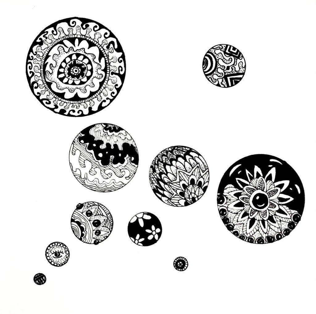 その日に思いついた模様を、ペンの動くままに描くんだ。