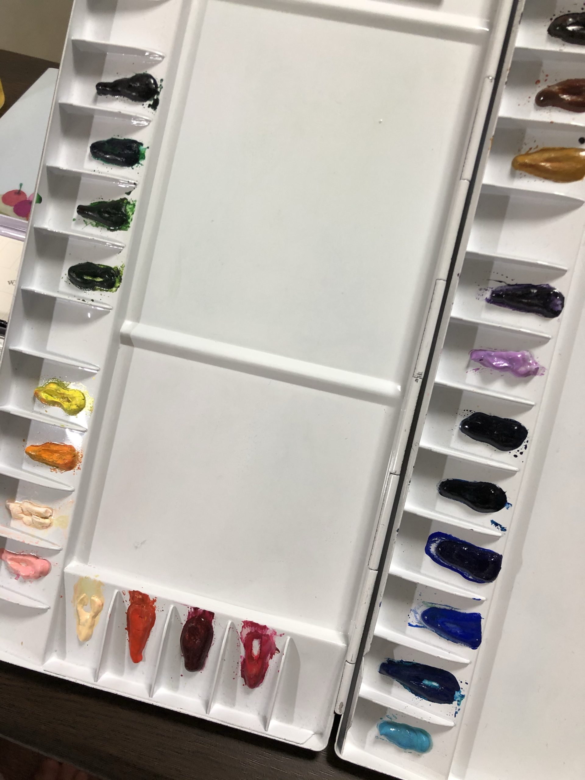 今日は、机とともに、普段使っている絵の具を一部紹介します。