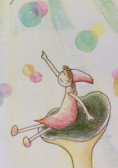 指の先に何が見えてるのかなぁ?みたいに頭の中で僕がこの妖精の視線を感じてみて表情を描いてます。笑
