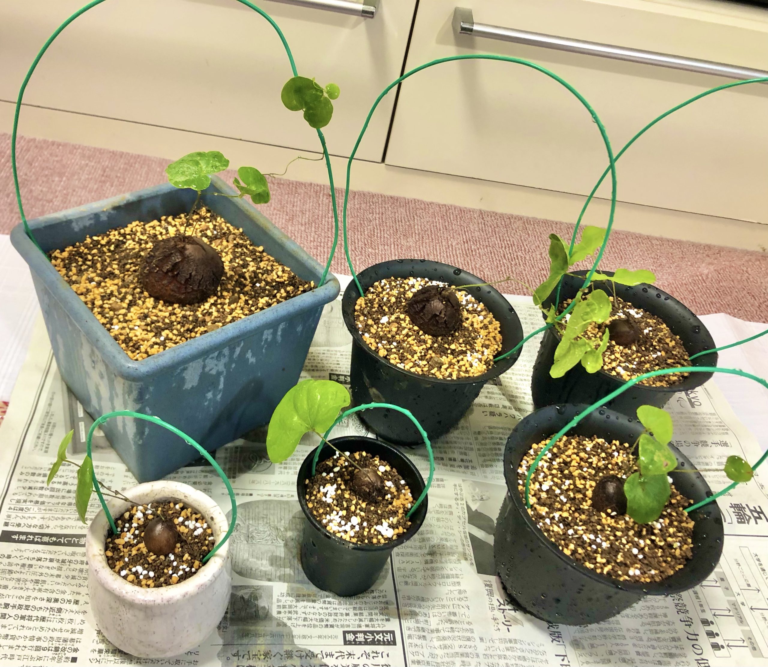 今日は、昼間に種から育てた亀甲竜の植え替えを行いました〜✨✨
