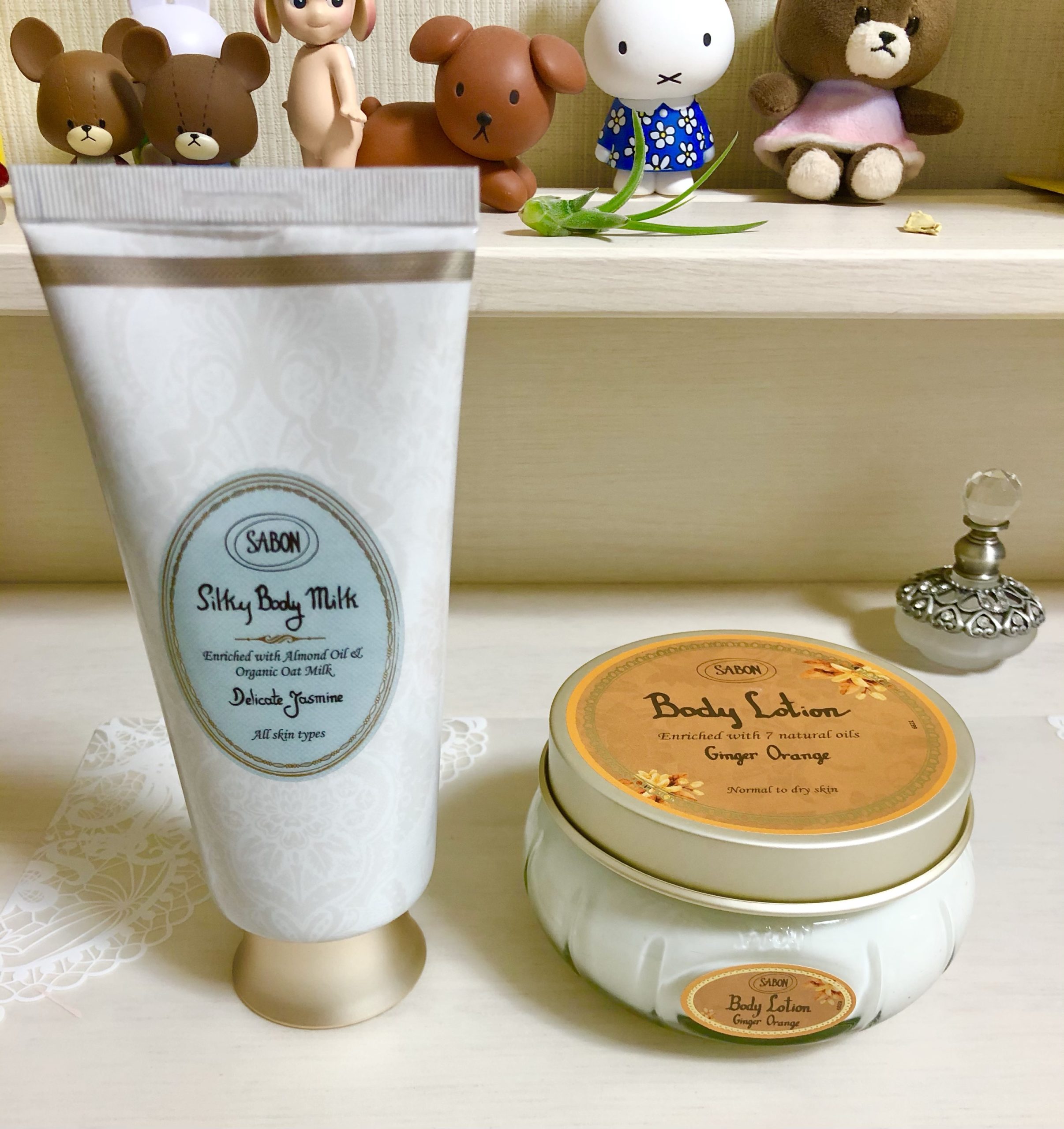 SABONのボディーミルク(左)とボディーローション(右)です。
