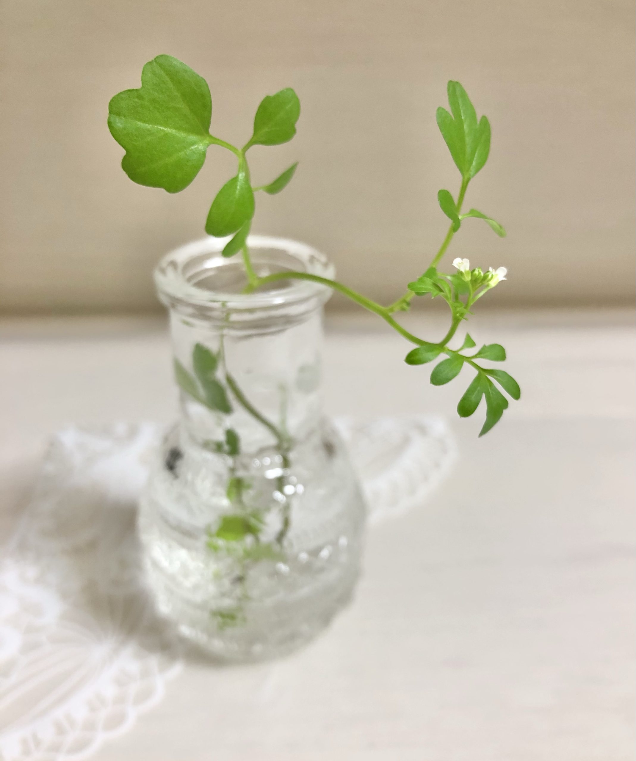 さて、今日は、薔薇の鉢に色々な苔や雑草?花?が生えてきてましたので、ひとつ摘んでミニ花瓶に挿してみました〜✨✨